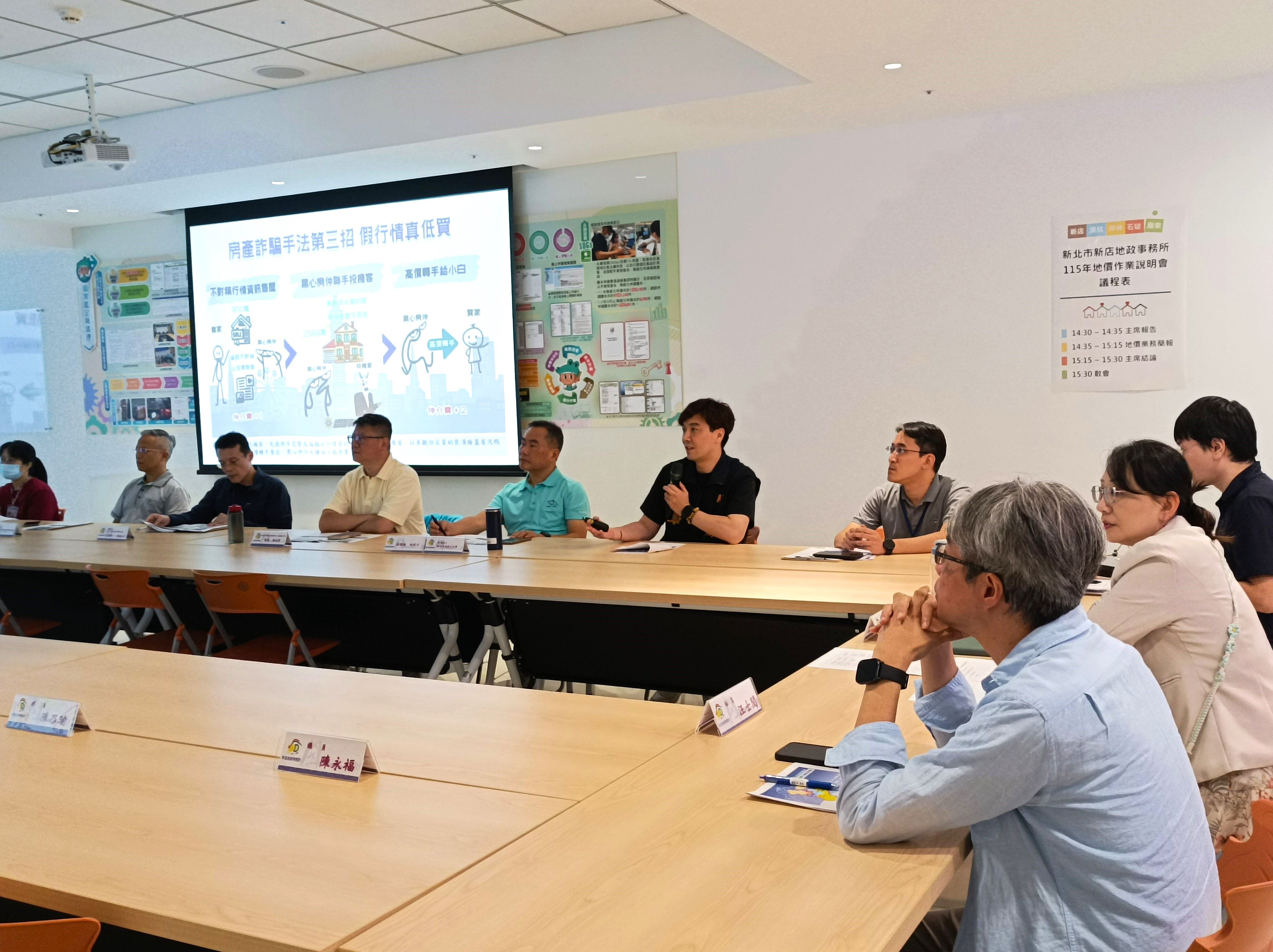 新店地所於114年9月24日召開115年地價作業說明會,說明本年度辦理地價調查估計作業情形、轄區重大開發建設等影響地價因素及最近一期地價動態等內容,並於會上宣導防詐騙相關訊息。